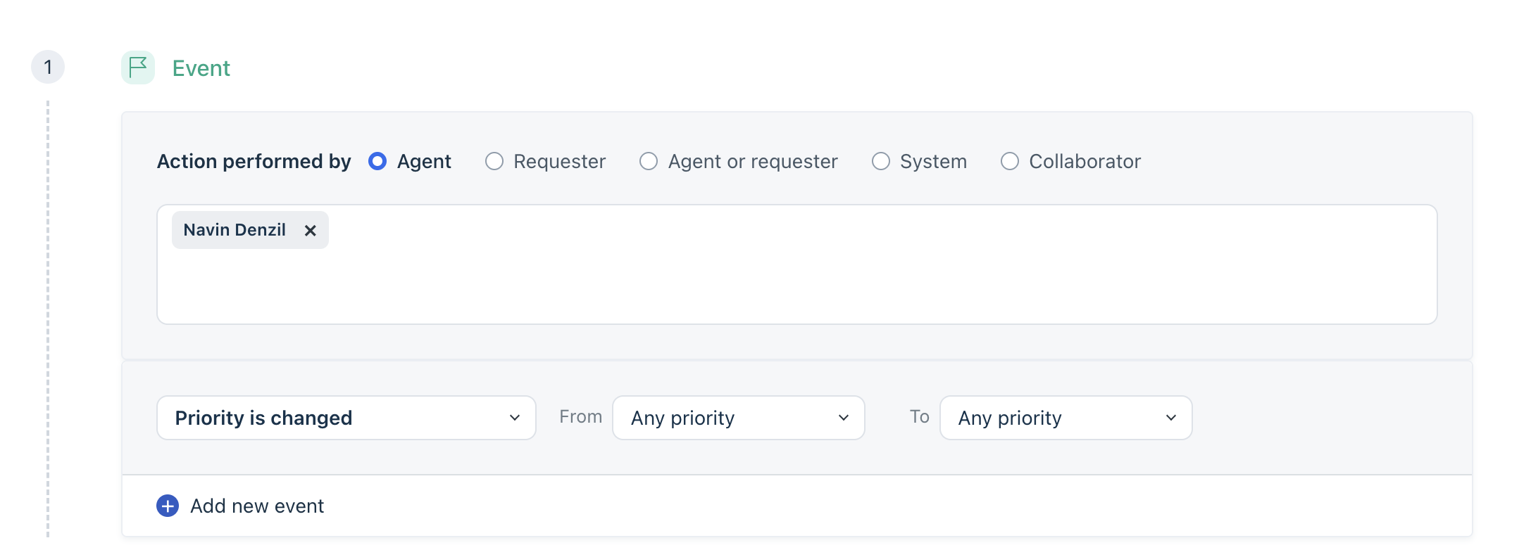 - assign an agent (action) if a note is added (event) by a third-party (condition)