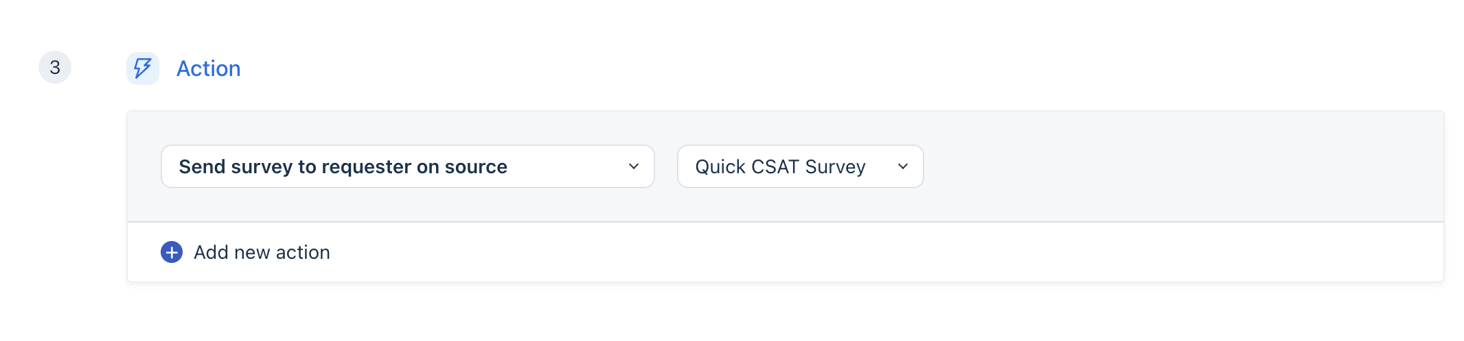 - Receive team-specific feedback: Create rules to send CSAT surveys based on the team that resolved the ticket. For example, if the billing team handles a ticket, the rule triggers a CSAT survey specific to the billing team. This ensures that every resolved ticket prompts a satisfaction survey for the customer.