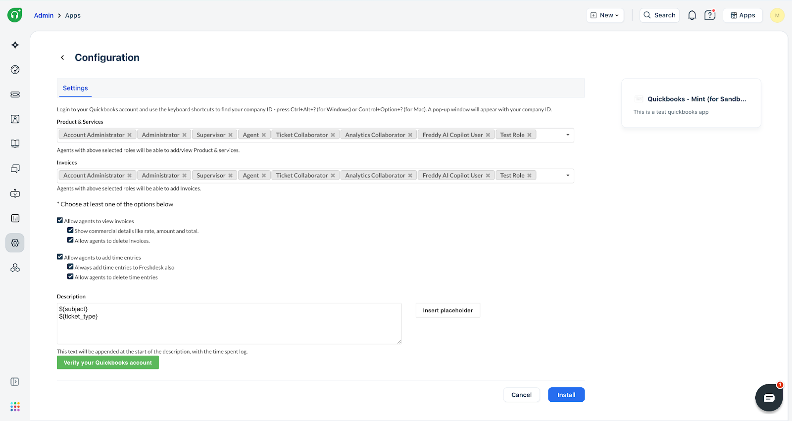 To install and link your QuickBooks account with your Freshdesk helpdesk, you must have Admin access in Freshdesk.