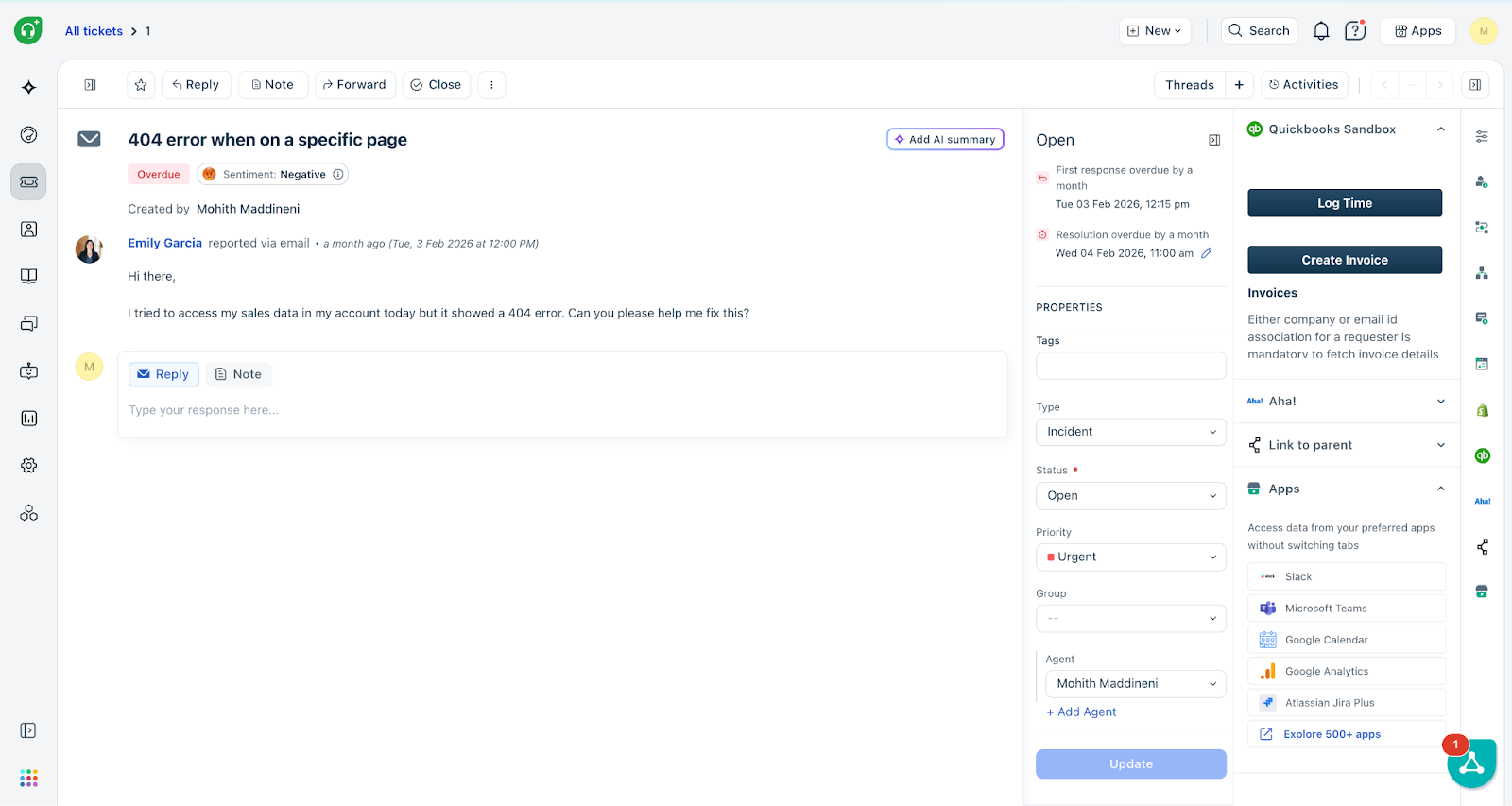 6. Agent Feature Usage: Once installed, agents can utilize the following features on the Freshdesk platform > Tickets page.