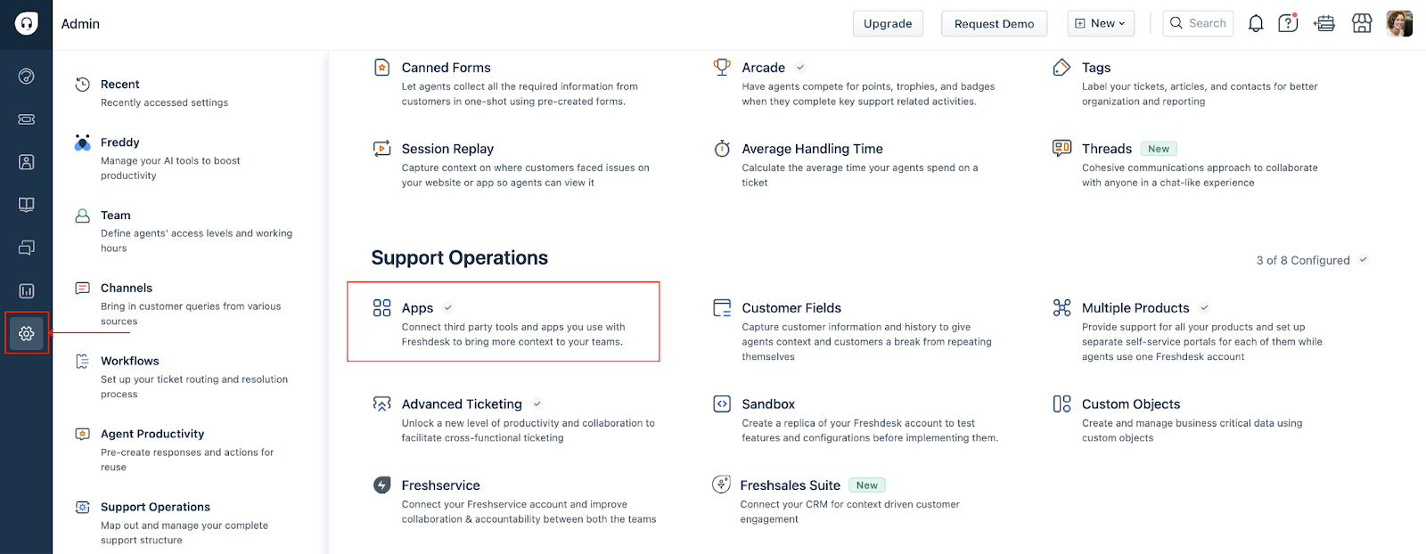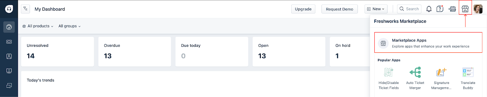 On the top-right corner, click the Freshworks Marketplace icon and then click Marketplace Apps.