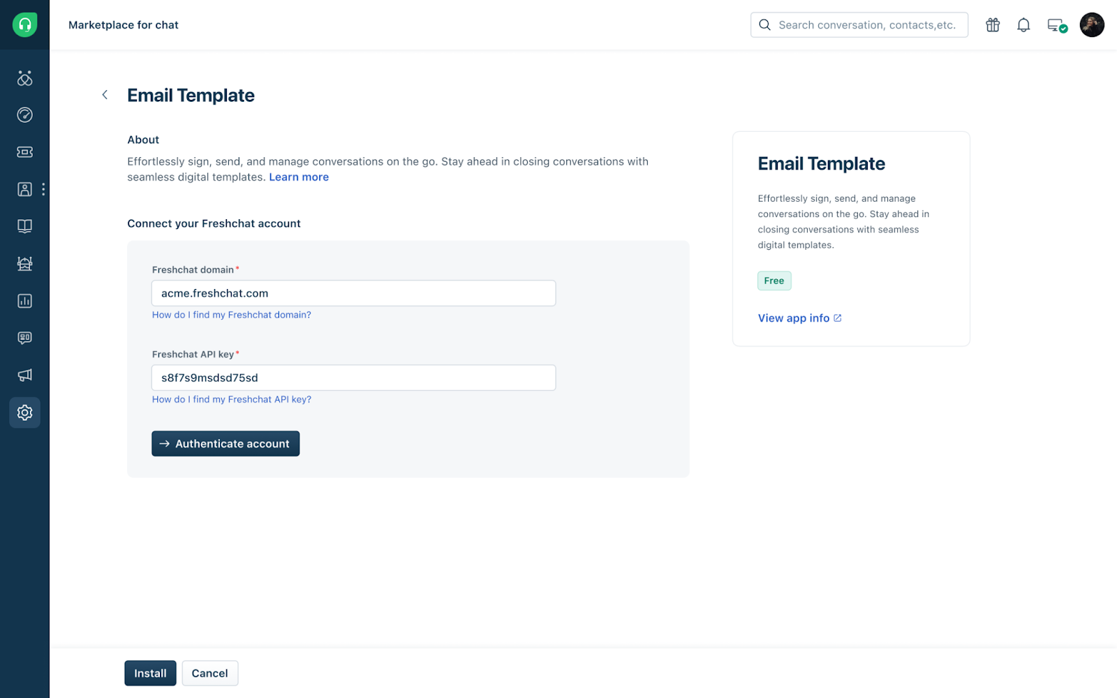 Your Freshdesk domain and API key will be auto-filled on the Configuration page. Click Authenticate account.