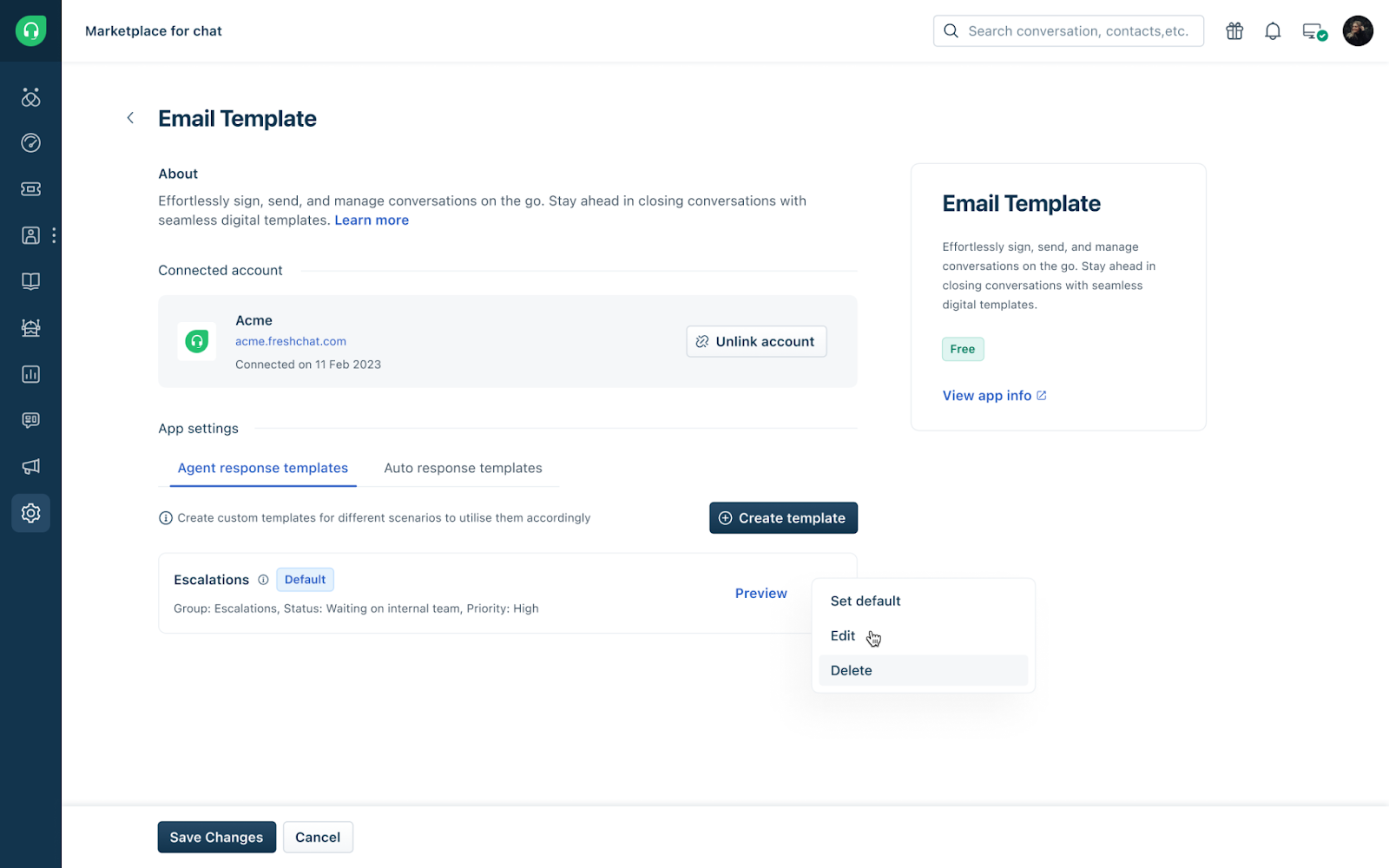 Once the account is linked, under app settings, in the Agent Templates tab, click Create Template